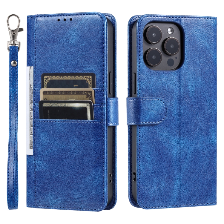 Funda Cuero Tipo Billetera para iPhone 16 Pro Max Capacidad 6 Tarjetas (Azul)