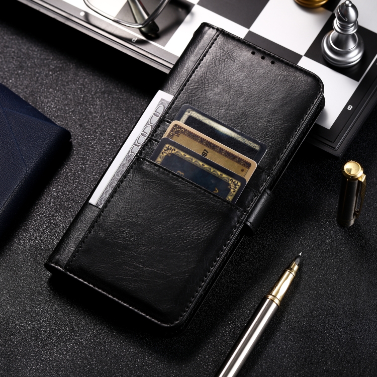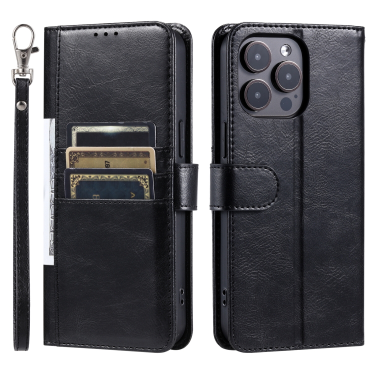 Funda de Cuero Tipo Billetera para iPhone 16 Pro Max con Capacidad para 6 Tarjetas (Negra)