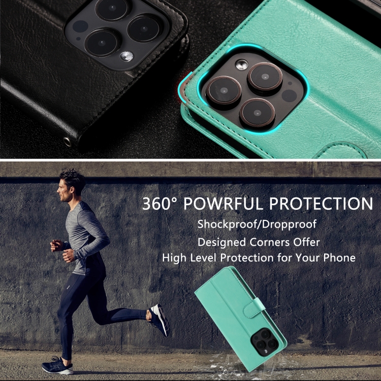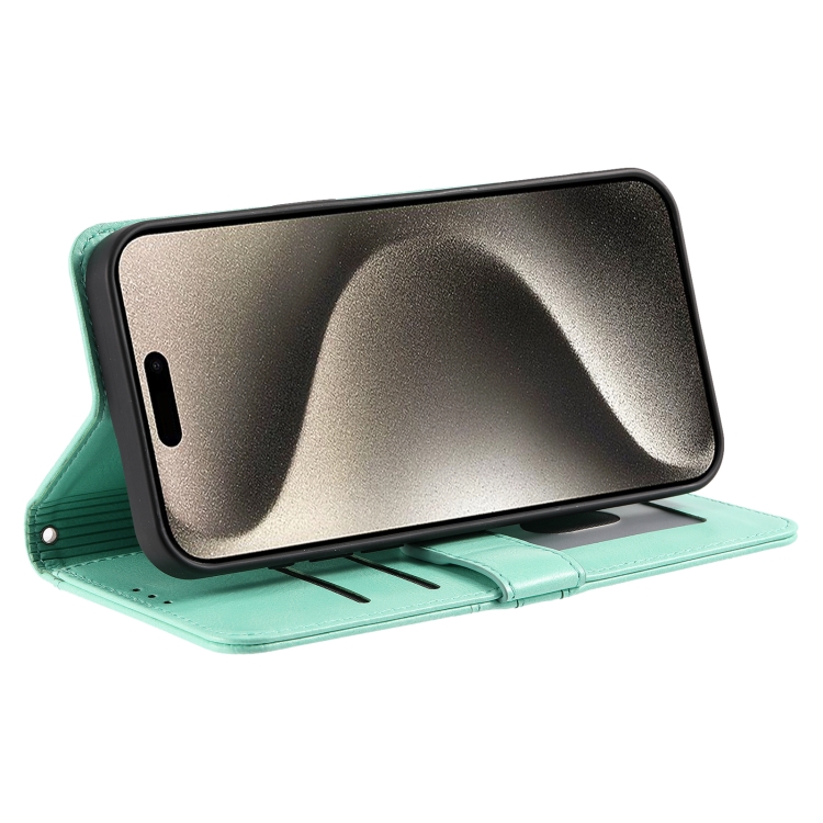 Funda Tipo Billetera Cuero para iPhone 16 Pro Max Capacidad 6 Tarjetas (Verde)
