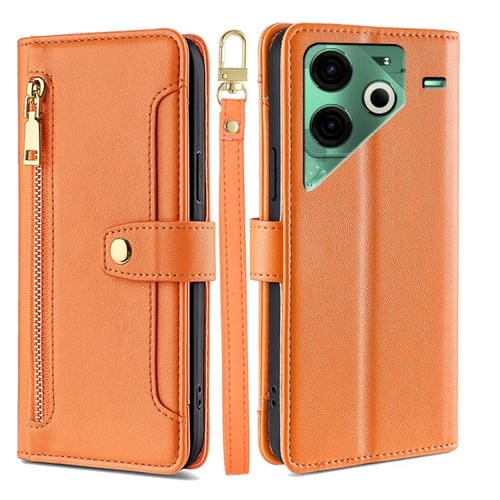 Funda de Cuero Tipo Billetera con Cremallera para Tecno Pova 6 Neo 4G (Naranja)