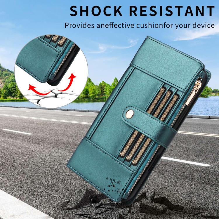 Funda de cuero tipo cartera con cremallera y bloqueo RFID para Samsung Galaxy A55 5G (verde)