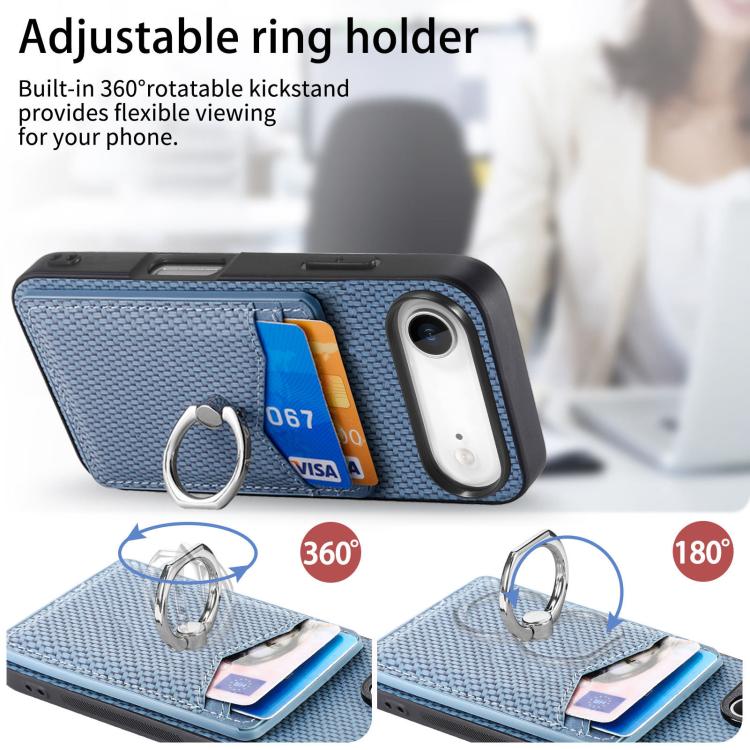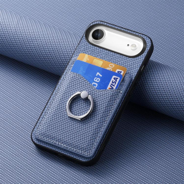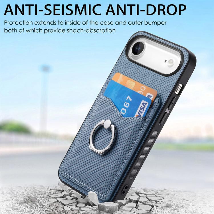 Funda de fibra de carbono con anillo para tarjeta para iPhone Air (azul)