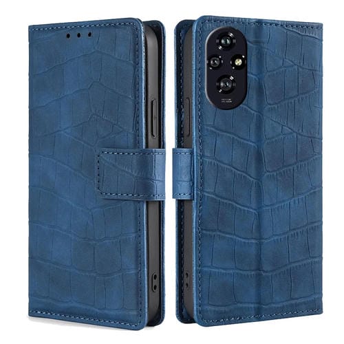 Funda de Piel con Cierre Magnético para Honor 200 5G (Azul) Diseño de Cocodrilo