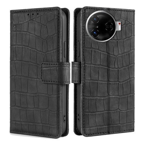 Funda de Piel para Tecno Camon 30 Pro 5G con Cierre Magnético y Diseño de Cocodrilo (Negro)