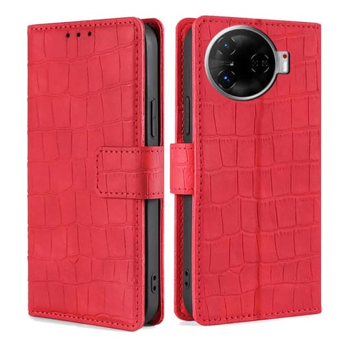 Funda de Piel para Tecno Camon 30 Pro 5G con Cierre Magnético y Diseño de Cocodrilo (Rojo)
