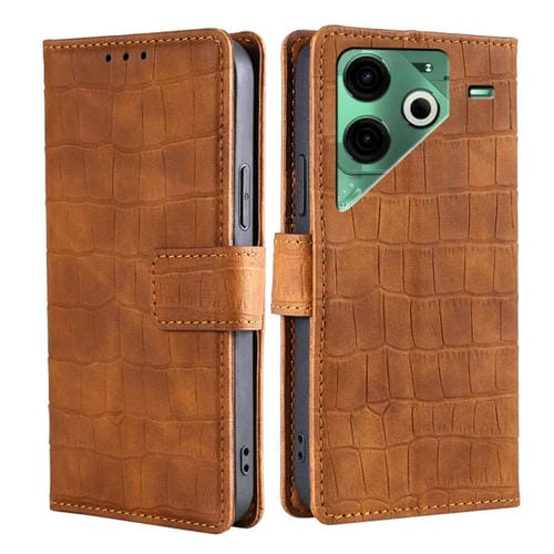 Funda de Piel con Cierre Magnético y Diseño de Cocodrilo para Tecno Pova 6 Neo 4G (Marrón)