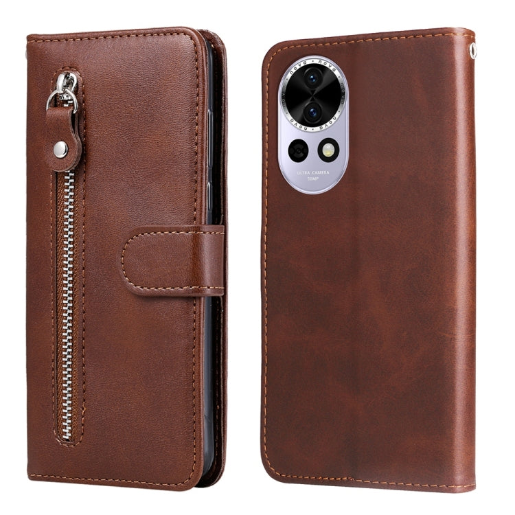 Funda de Piel con Cremallera y Textura de Becerro para Huawei Nova 13/Nova 12 (Marrón)