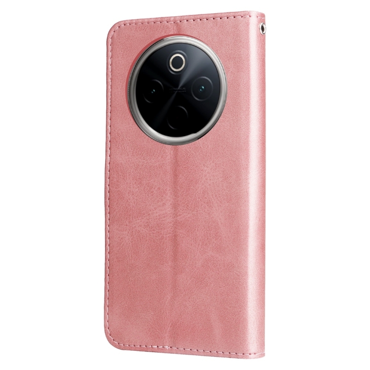 Funda de Piel con Cremallera y Textura de Becerro para OnePlus 13 (Oro Rosa)