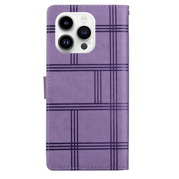 Funda de piel con relieve a cuadros para iPhone 16 Pro Max (morada)