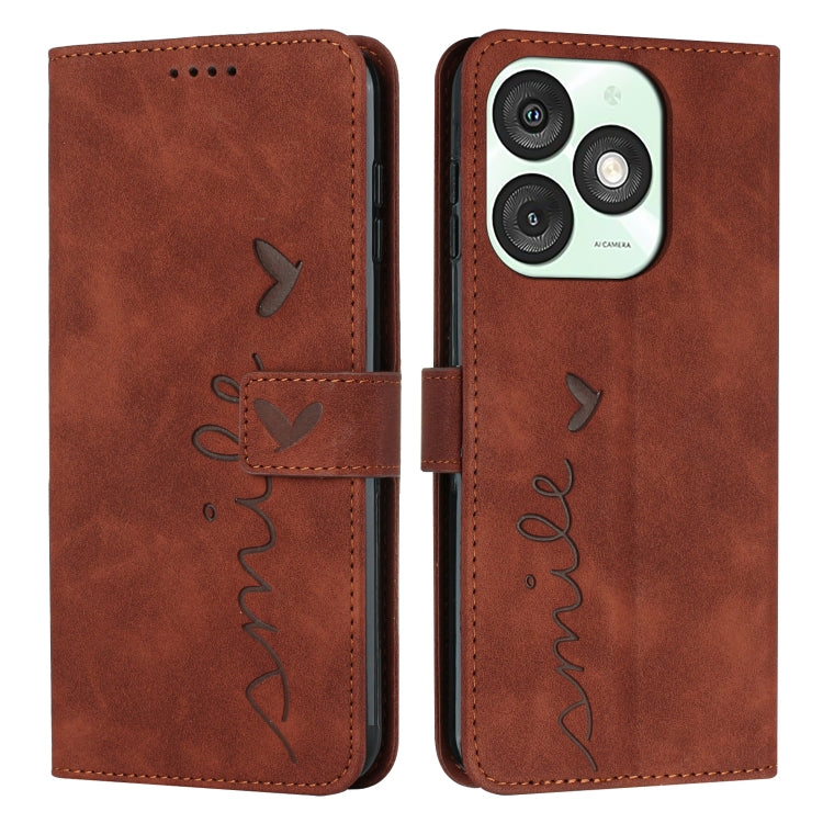 Funda de Piel con Relieve de Corazón y Cordón Largo para Teléfono Itel A50 (Marrón)