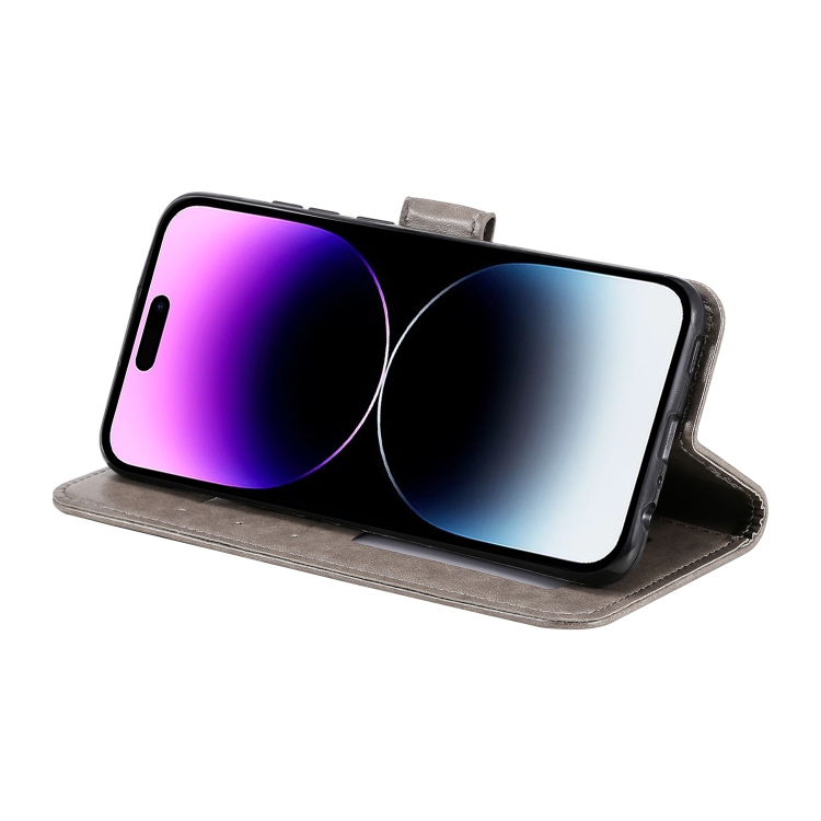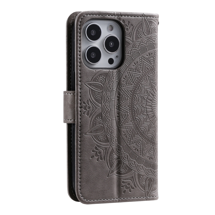 Funda de Piel con Relieve de Flor de Tótem para iPhone 16 Pro Max (Gris)