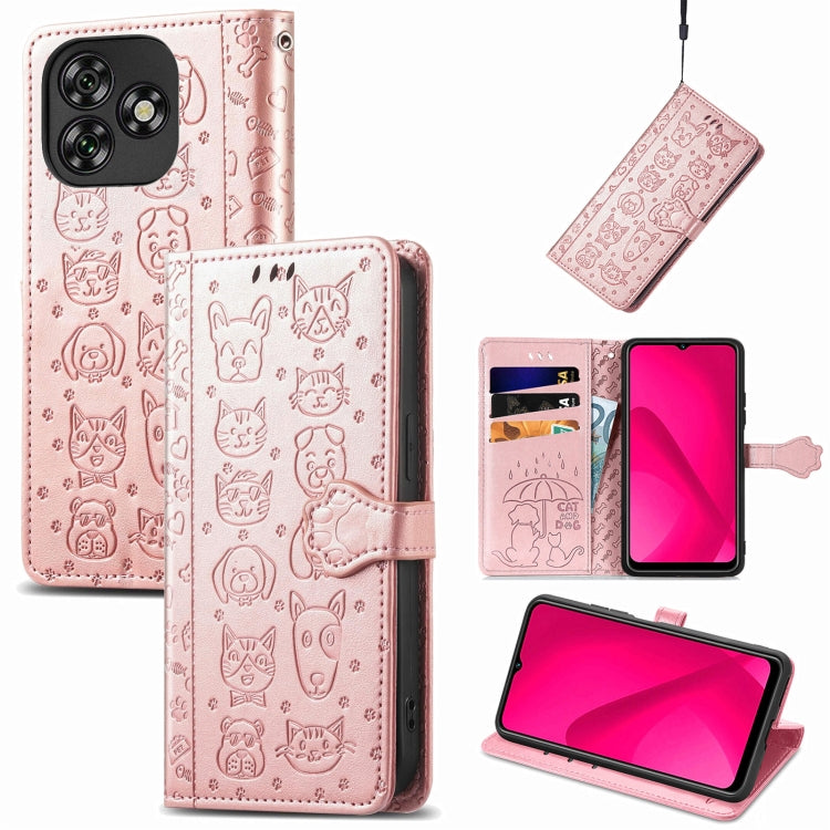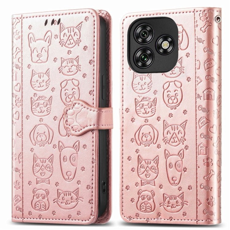 Funda de Piel con Relieve de Gato y Perro para Teléfono Oukitel C53 (Oro Rosa)