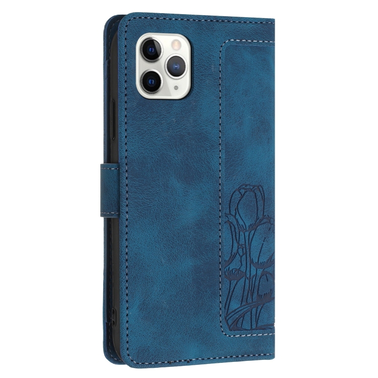 Funda de Piel con Relieve de Tulipanes para iPhone 11 Pro Max con Cordón (Azul)