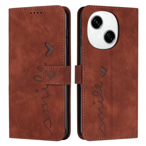 Funda de Piel con Relieve Corazón para Tecno Spark Go 1 (Marrón)