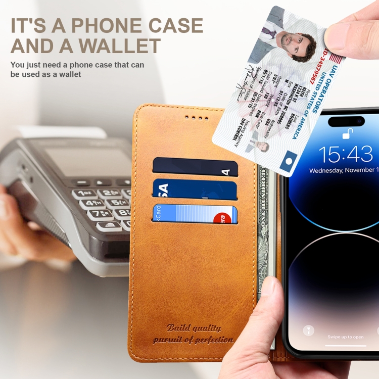 Funda de Piel Suteni con Tapa Horizontal Textura de Becerro para iPhone 16 Pro (Caqui)