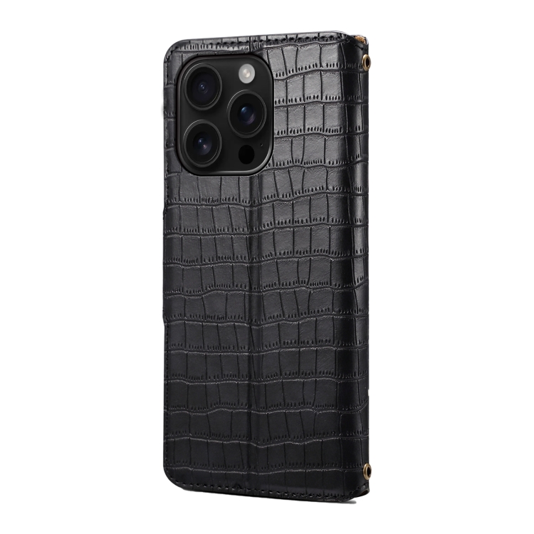 Funda de piel Denior con textura de cocodrilo y borde aceitado para iPhone 16 Pro (Negra)