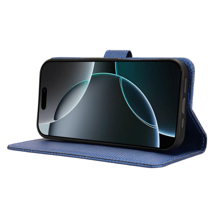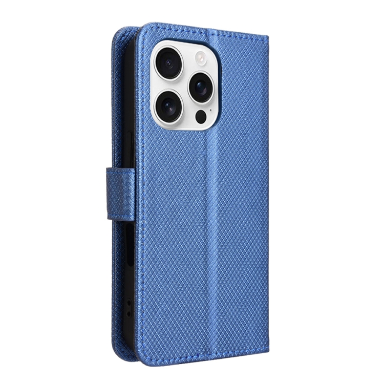 Funda de Piel con Textura de Diamante para iPhone 16 Pro (Azul)
