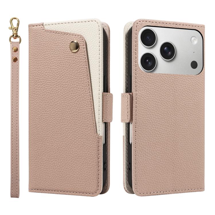 Funda de piel con textura de lichi y espejo para iPhone 17 Pro (rosa)