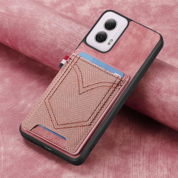 Funda de Piel con Textura Vaquera para Motorola Moto G Power 5G 2024 con Ranura para Tarjetas (Rosa)
