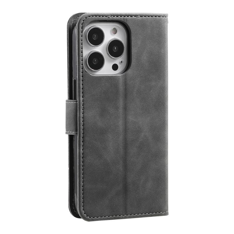 Funda de Piel de Becerro con Costuras para iPhone 16 Pro Max (Gris)