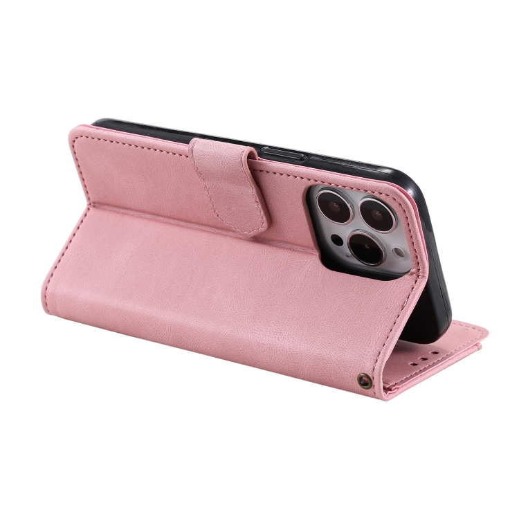 Funda de Piel de Becerro para iPhone 16 Pro Max con Costuras Tacto Piel de Uña (Oro Rosa)