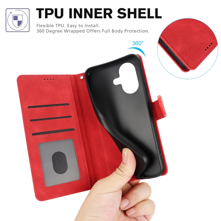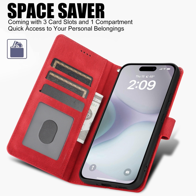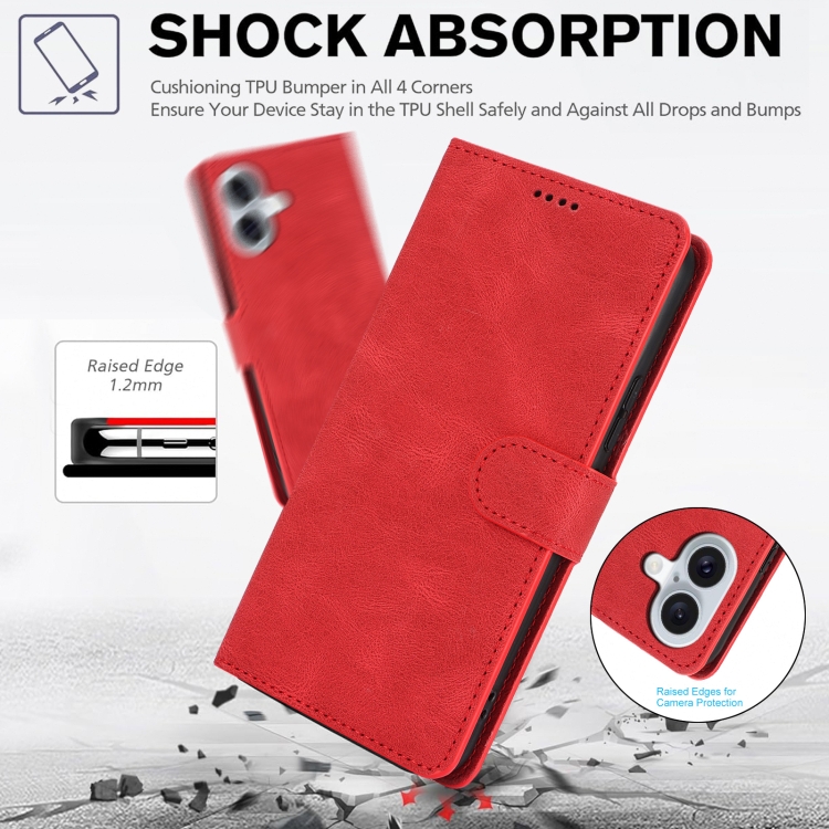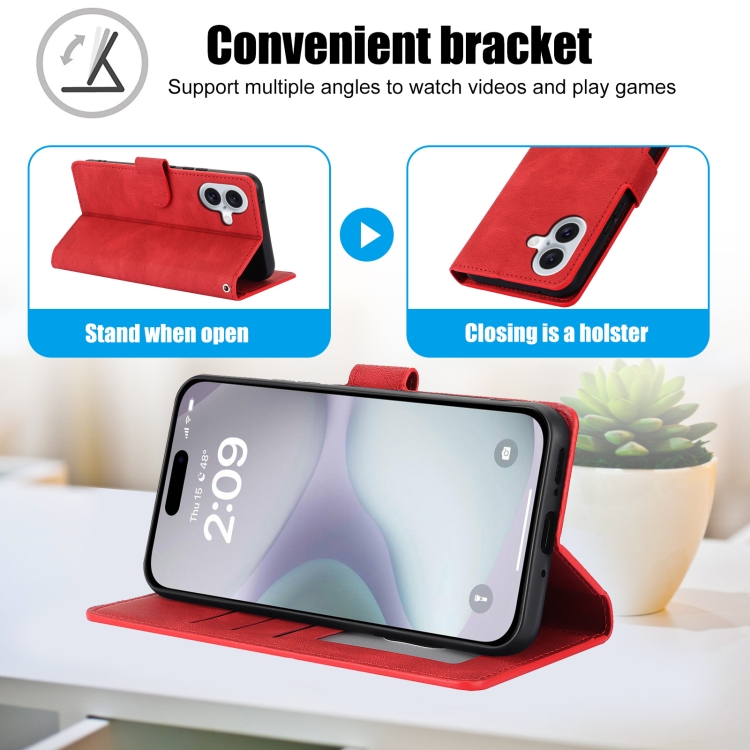 Funda de Piel de Becerro con Textura de Piel de Fantasía para iPhone 16 (Rojo)