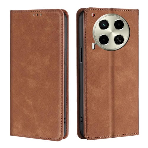 Funda de Piel Magnética para Teléfono Tecno Camon 30 Skin Feel (Marrón Claro)