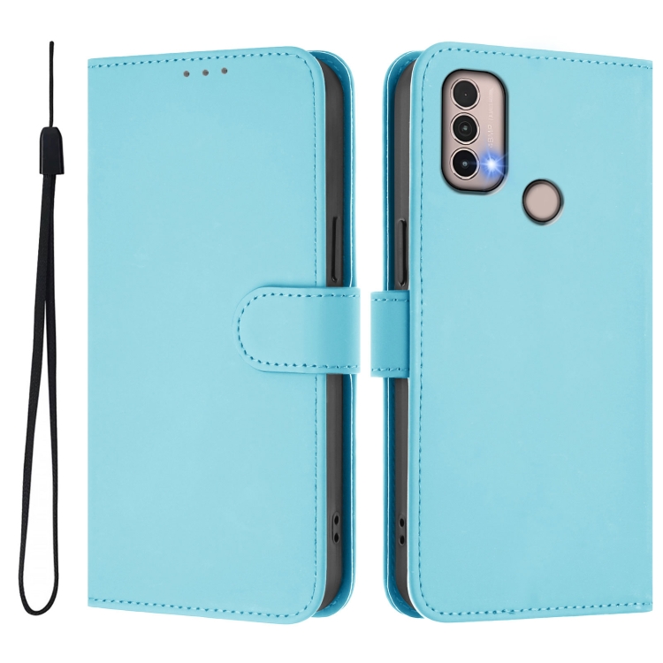 Funda de Piel Sintética con Cordón para Motorola Moto E20/E30/E40 (Azul Cielo)