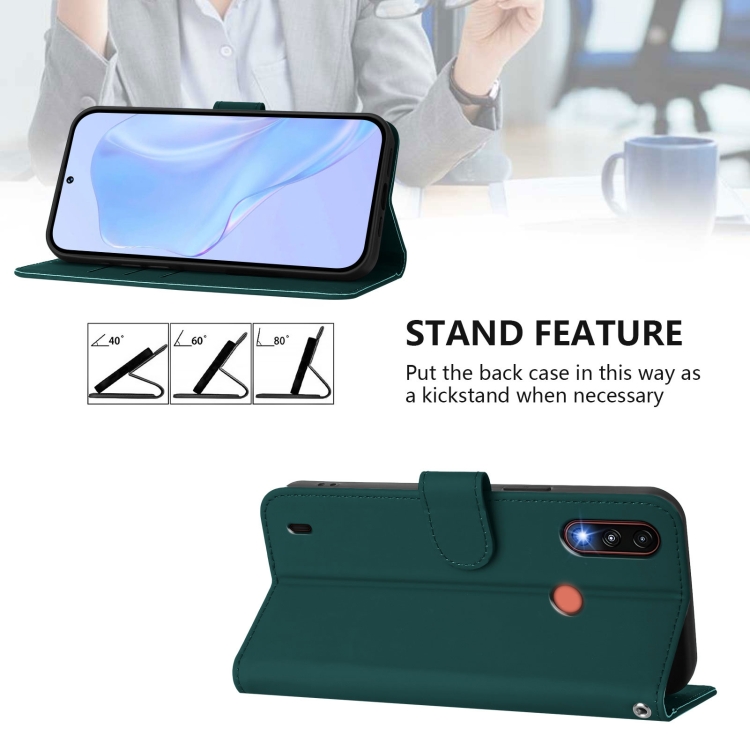 Funda de Piel Sintética con Cordón para Motorola Moto E7 Power (Verde Oscuro)