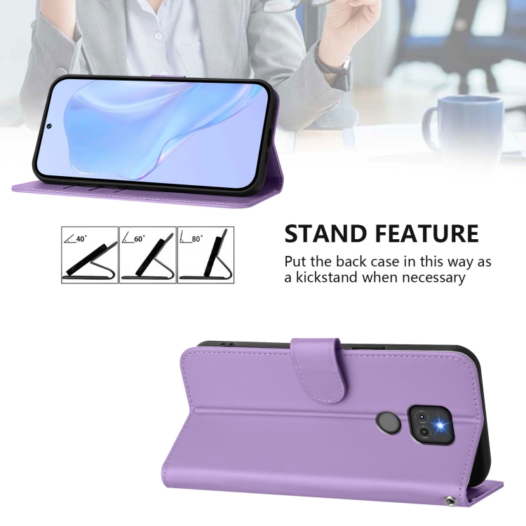 Funda de Piel Sintética con Cordón para Motorola Moto G Play 2021 (Morado Lavanda)