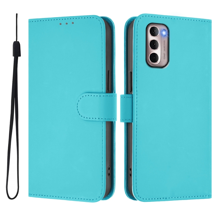 Funda de Piel Sintética con Cordón para Motorola Moto G Stylus 4G (2022) (Azul Lago)
