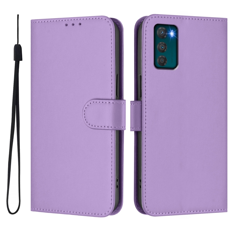 Funda de Piel Sintética con Cordón para Motorola Moto G42 4G (Morado Lavanda)
