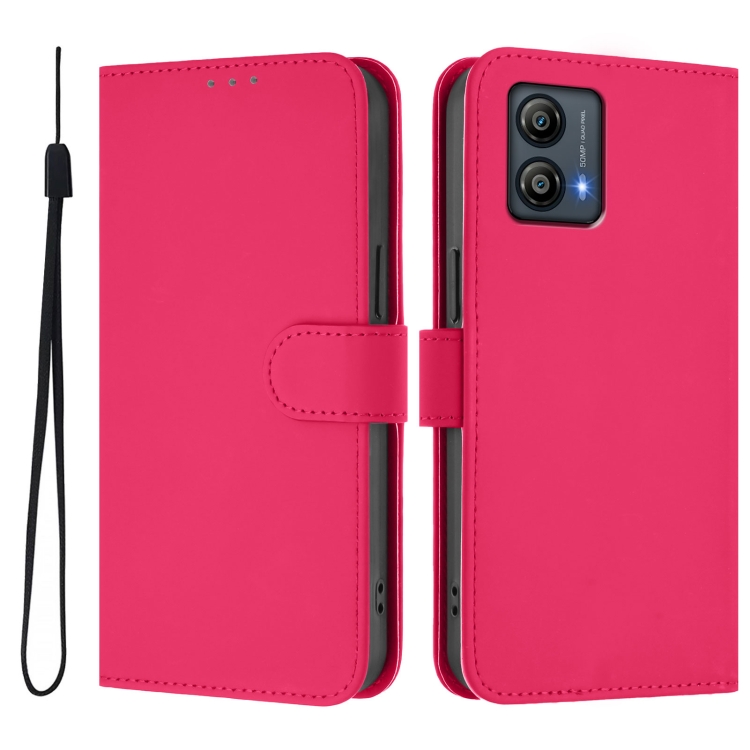 Funda de Piel Sintética con Cordón para Motorola Moto G53 5G y G13 4G (Rosa y Rojo)