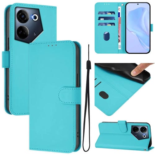 Funda de Piel para Tecno Camon 20 Pro 4G con Textura Lisa y Cordón (Azul Lago)