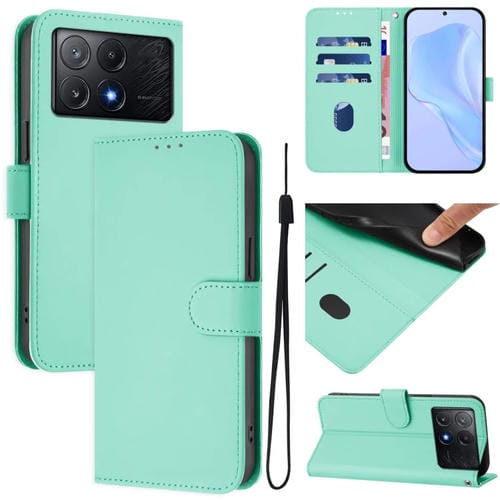 Funda de Piel Sintética con Cordón para Xiaomi Poco X6 Pro (Verde Menta)