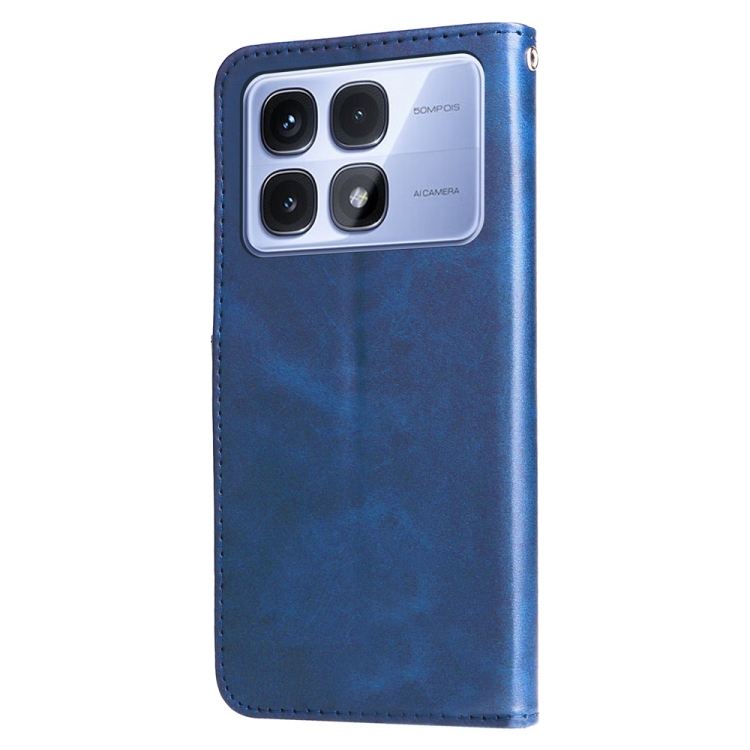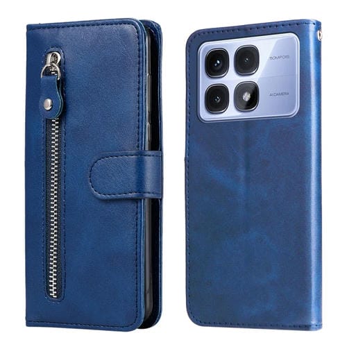 Funda de Piel Sintética con Cremallera y Textura de Becerro para Redmi K70 Ultra (Azul)