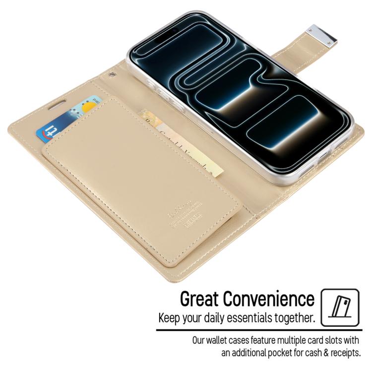 Funda de piel texturizada Crazy Horse GOOSPERY RICH DIARY para iPhone 17 Pro (Dorada)
