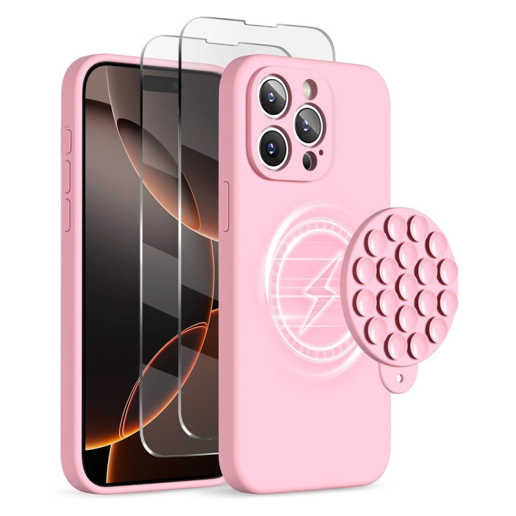 Funda de Silicona con Ventosa Magsafe para iPhone 16 Pro con Película de Pantalla (Rosa)