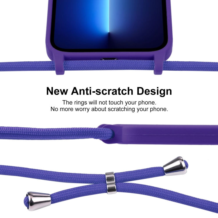 Funda de Silicona Líquida para iPhone 13 Pro Crossbody Lanyard (Púrpura)