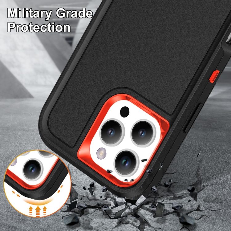 Funda Silicona y PC Resistente para iPhone 16 Pro Max con Soporte (Negro y Naranja)