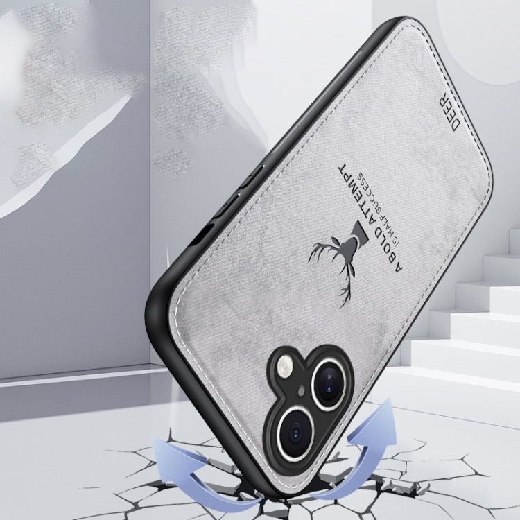 Funda Tela iPhone 16 Diseño Cabeza de Ciervo Todo Incluido (Blanca)