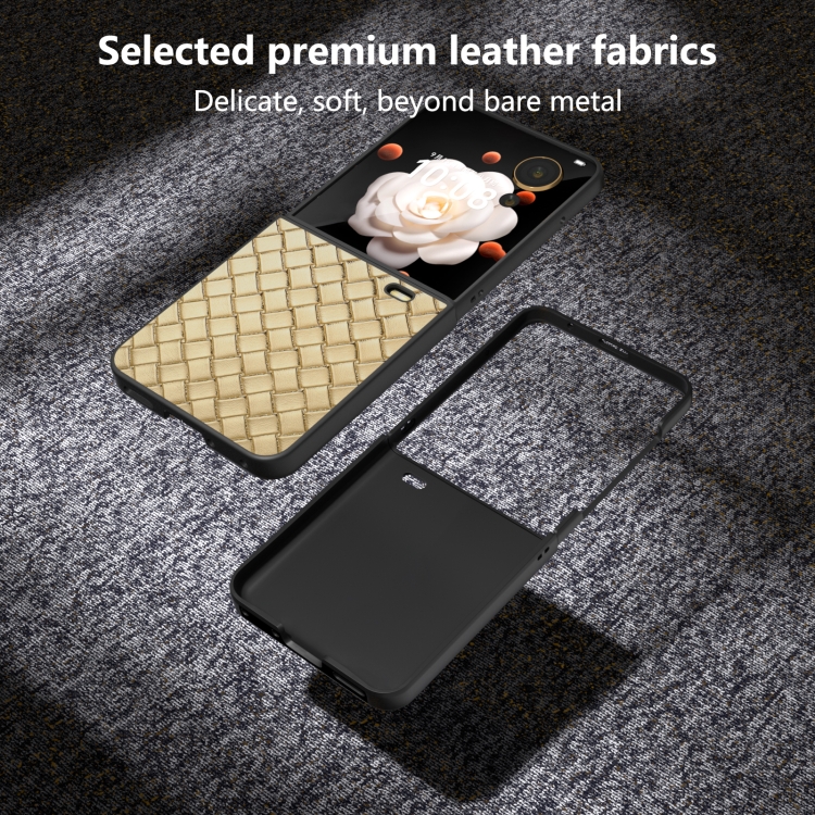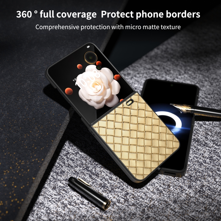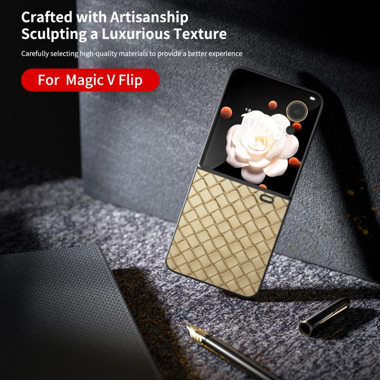 Funda de Teléfono Honor Magic V Textura Tejida PU Marco Abatible (Negro)