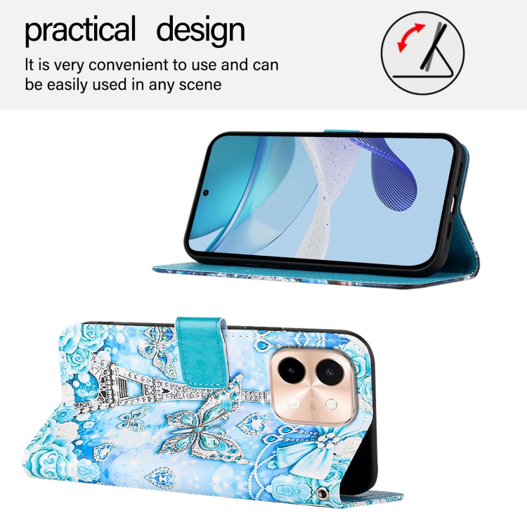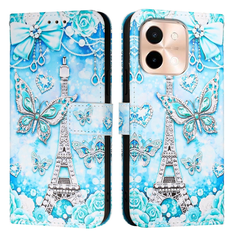 Funda de Teléfono de Cuero con Patrón de Dibujo de Colores y Tejido Liso para Vivo Y28 4G (Mariposa En Forma de Torre)