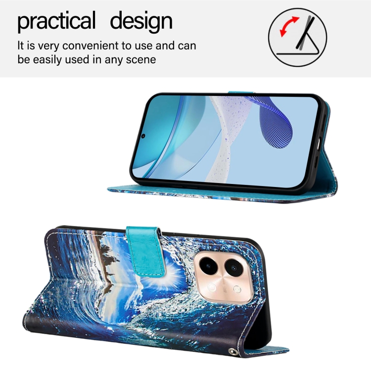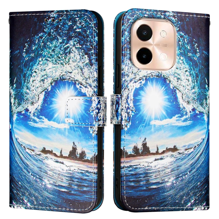 Funda de Teléfono de Cuero con Patrón de Dibujo de Colores y Tejido Liso para Vivo Y28 4G (Ondas y Sol)