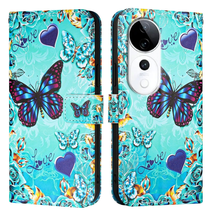 Funda de Teléfono de Cuero con Tejido Liso y Patrón de Dibujo de Colores para Vivo S19 Pro (Mariposa de Amor)