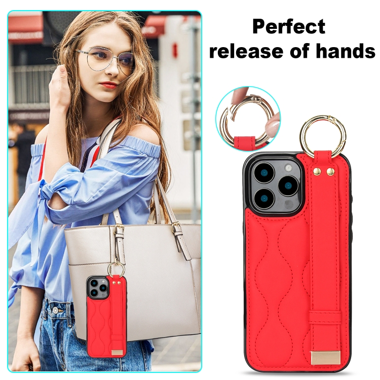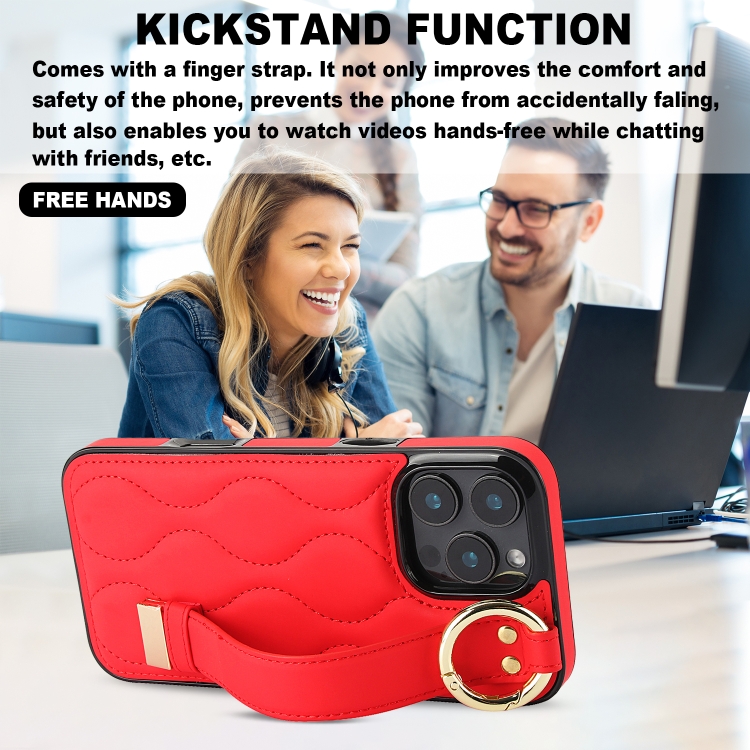 Funda de Teléfono de Pu con Anillo Cobertura Total Antideslizante para iPhone 16 Pro con Pulsera (Rojo)