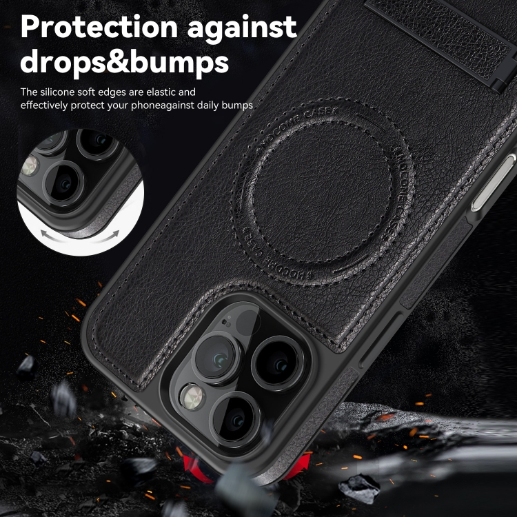 Funda de Teléfono PU con Soporte Multifunción Magsafe para iPhone 16 Plus (Negra)