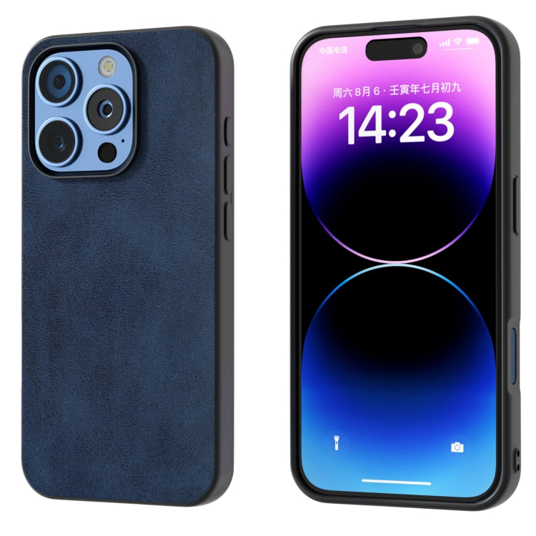 Funda de Teléfono PU Textura Becerro Dos Colores Marco Negro para iPhone 16 Pro Max (Azul)