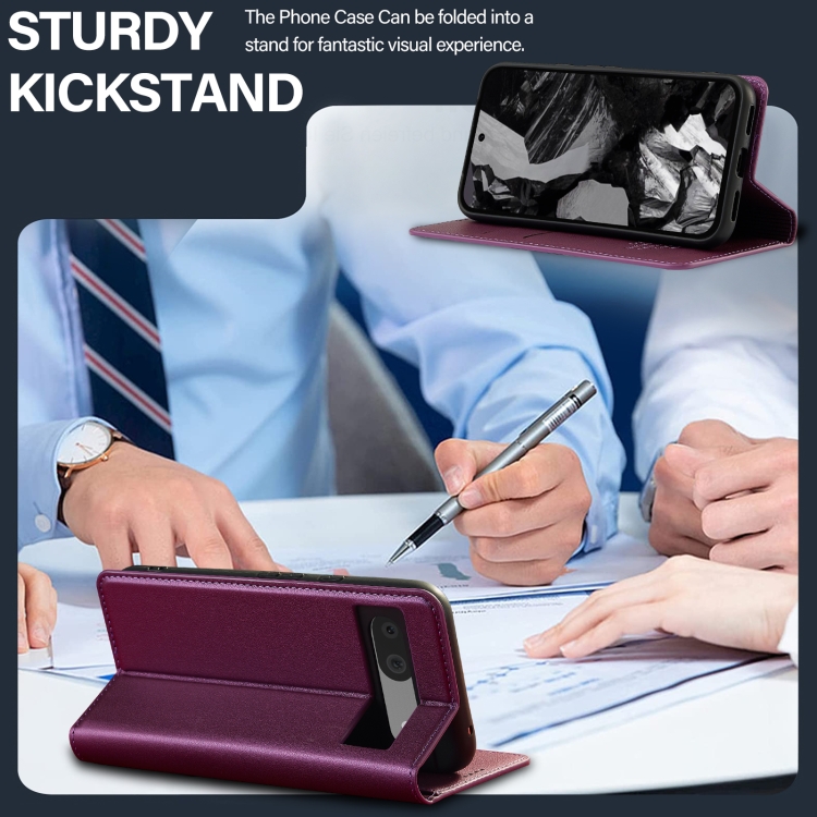 Funda de Teléfono PU Lc.Imeeke L1 Series para Google Pixel 8A con Textura Esmerilada (Morado)