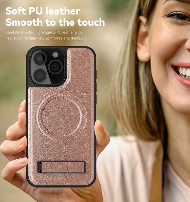 Funda de Teléfono PU Magsafe con Soporte Multifunción para iPhone 16 Plus (Rosa)